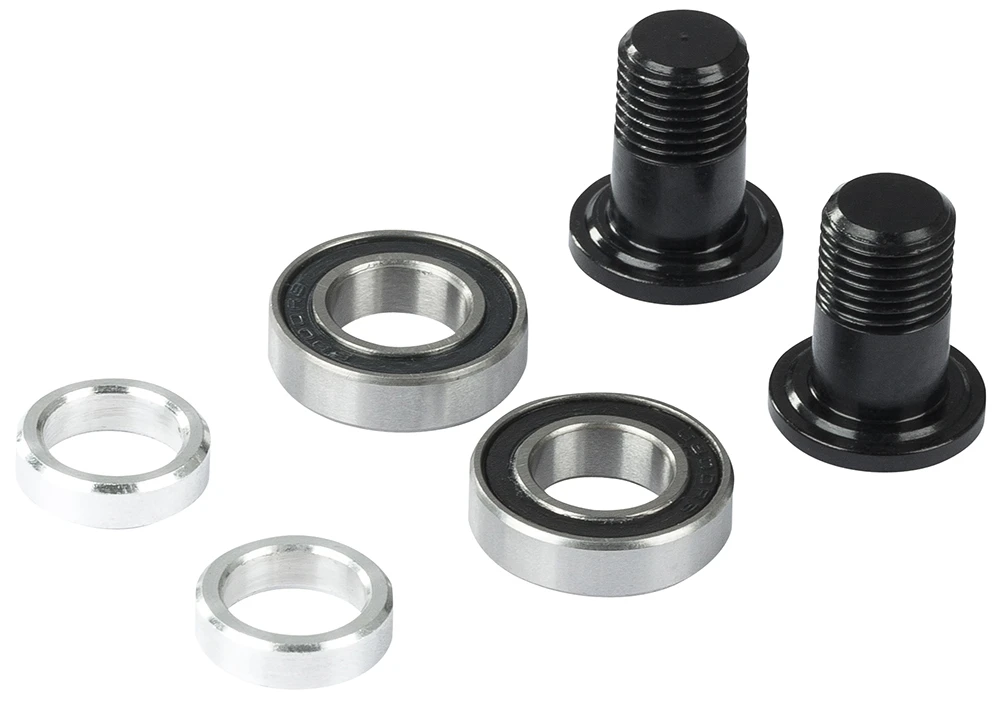 Le kit de roulements/vis pour le levier de renvoi vers la tige de selle de CUBE comprend des roulements, un spacer et des vis d’axe.