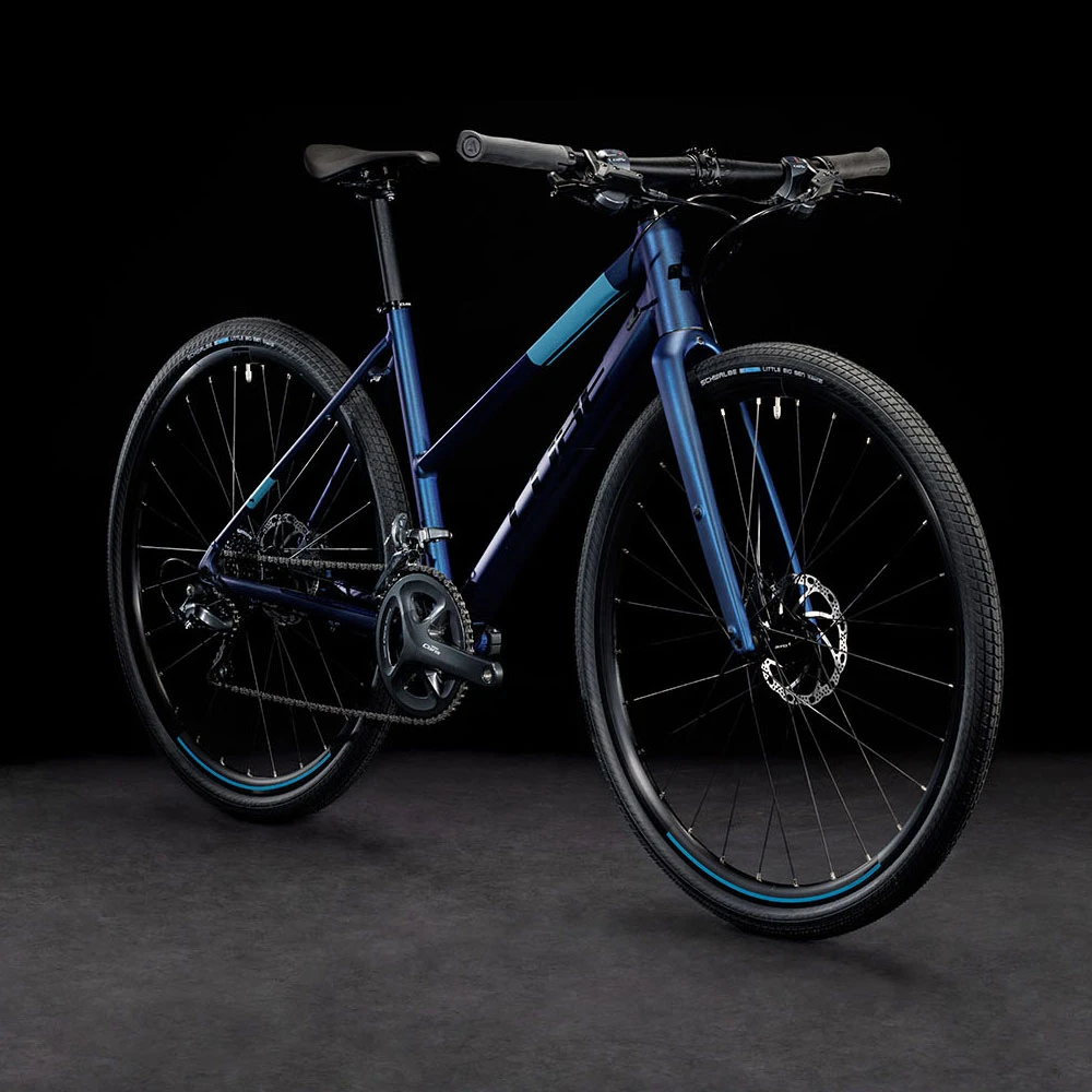 Take the race-inspired DNA of CUBE’s road bikes, throw in some flat bar practicality and what do you have? The Nulane, that’s what. Powerful flat mount Tektro disc brakes offer progressive, reassuring stopping power in any weather conditions. Shimano’s reliable and smooth-shifting Claris 2×8 transmission ensures you’re always in the right gear. And the comfortable, lightweight full carbon fork helps smooth your way, even on rougher roads. Commuter, trainer or explorer: where will your Nulane take you today?