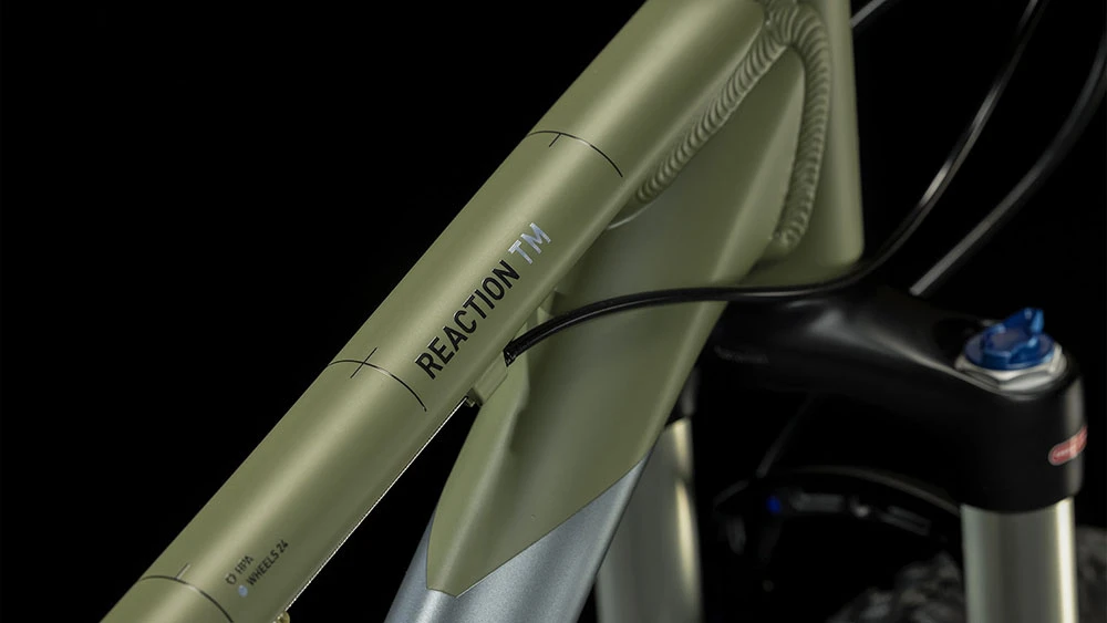 We don’t cut corners at CUBE. That’s why the Reaction 240 TM uses the same kind of heat-treated 6061 aluminium tubes that you’ll find in the performance adult bikes, as well as the same mechanical tube-forming process to adjust tube shapes for the best combination of strength and weight. A replaceable derailleur hanger insures against expensive repairs in the event of minor mishaps, and there’s plenty of clearance for wide tyres to ensure great grip, comfort and safety.
